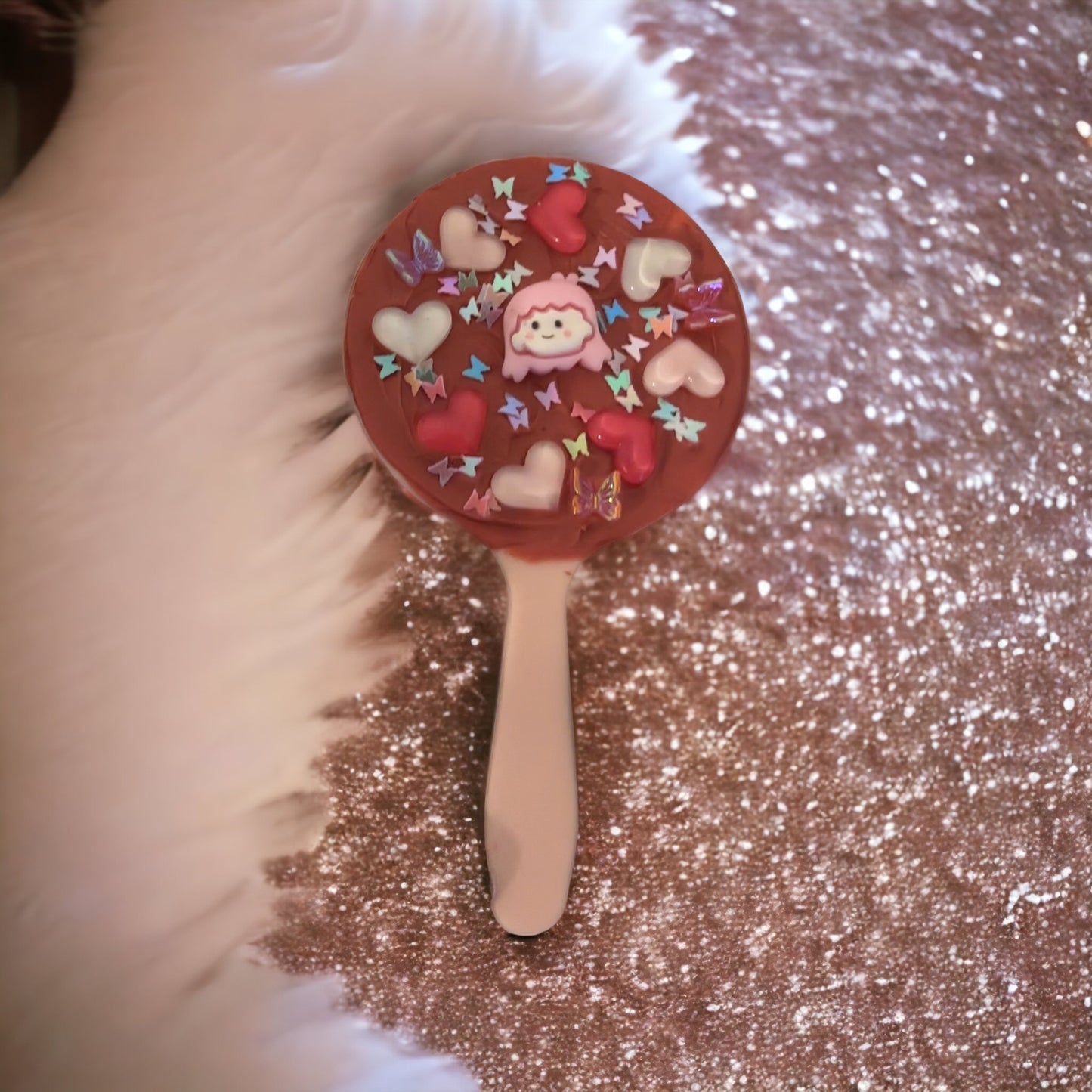 Ready to buy! Red small mirror decorated with hearts.